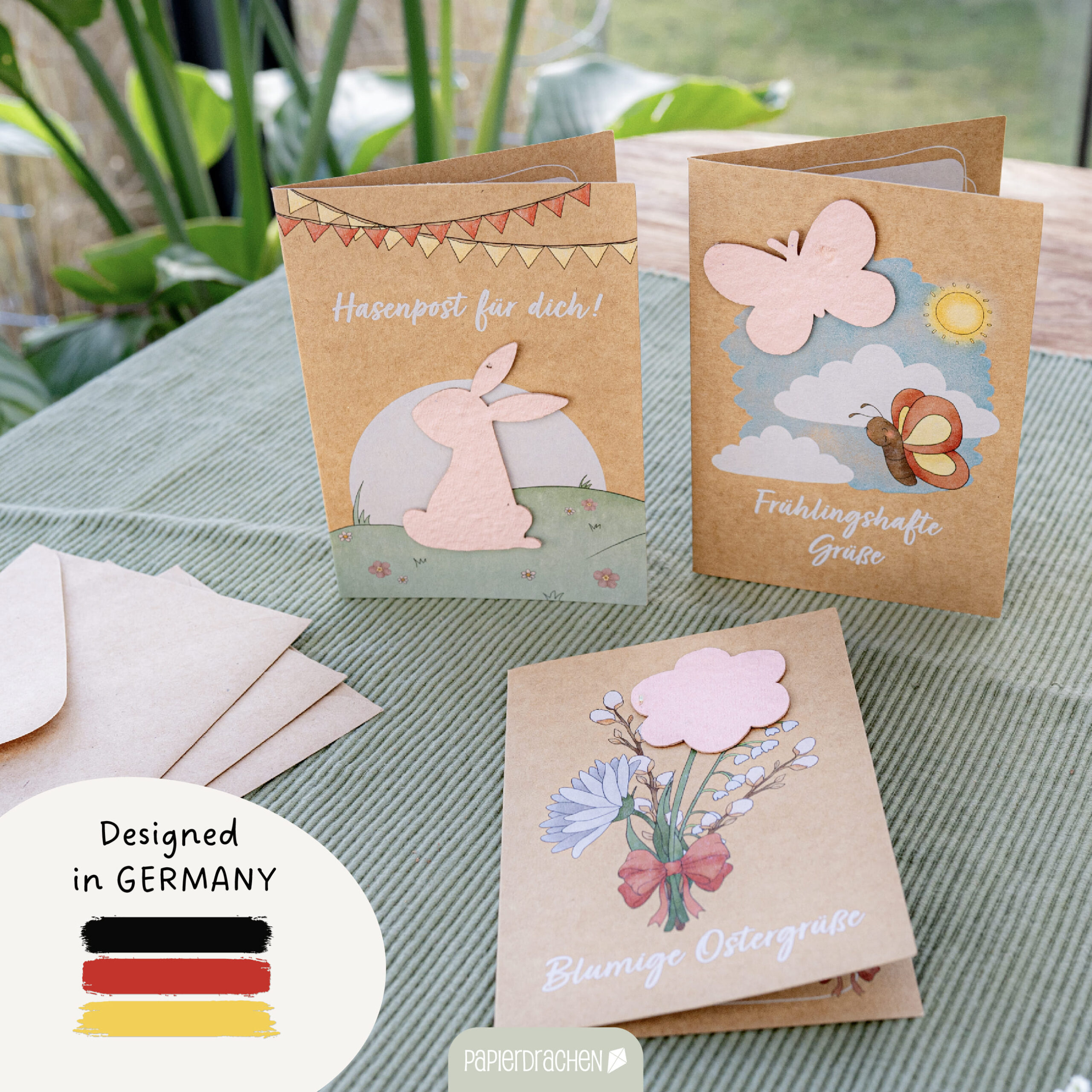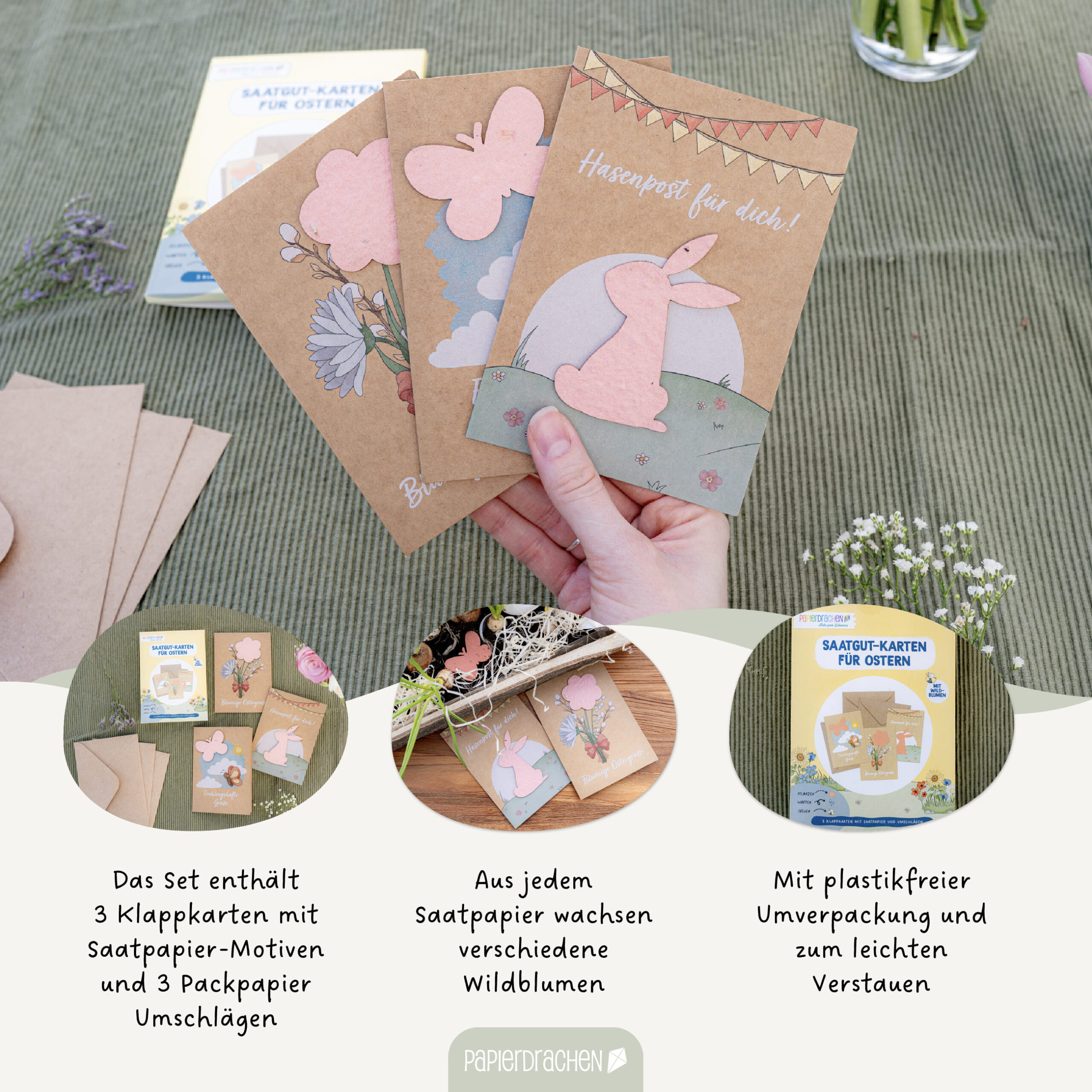 3 Klappkarten mit Saatpapier – Osterhasenwelt