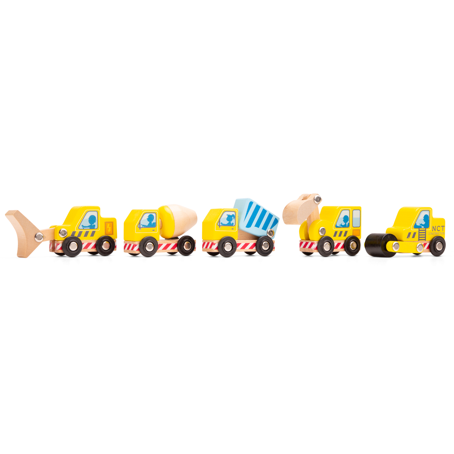 Kinder lieben Spielzeugfahrzeuge. Sie zoomen, piepsen, rasen, krachen und parken. Dieses Set mit 5 Baufahrzeugen aus Holz von New Classic Toys ist die perfekte Ergänzung für jede Sammlung. Es enthält einen Betonmischer, eine Strassenwalze, einen Muldenkipper, einen Bagger und einen Frontlader.