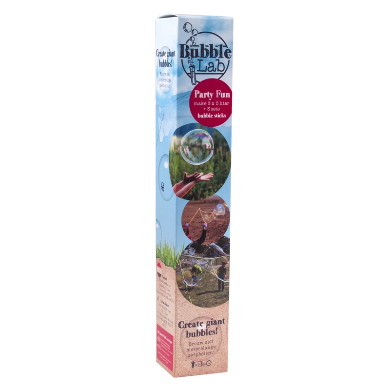 BubbleLab sorgt dafür, dass das Spielen im Freien zur Party wird. Blasen machen, laufen und versuchen, eine zu fangen oder einige lustige Experimente mit dem Seifenwasser zu machen.