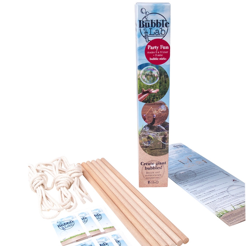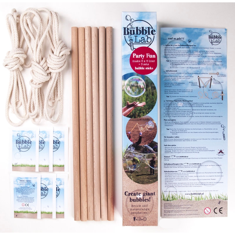 BubbleLab Set – 3 Sätze Sticks und Blasenpulver für 15 Liter Seifenwasser!