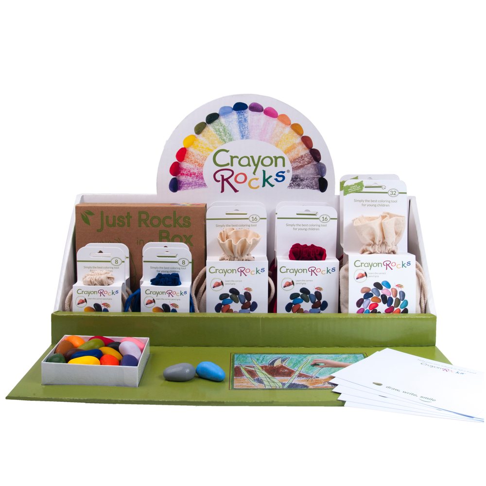 Das Display motiviert die Kunden die Crayon Rocks zu erleben. Jedes Display enthält 16 Crayon Rocks sowie Karten um darauf mit den Farben zu malen.