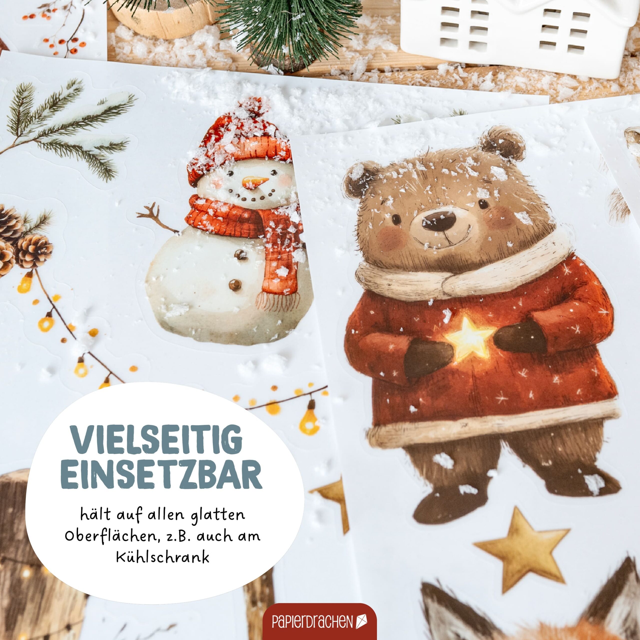 Dekoriere deine Fenster, Spiegel oder andere glatte Flächen mit unseren festlichen Fensterstickern. Das Set enthält 6 Stickerbögen mit zahlreichen Motiven – darunter fröhliche Tiere, Tannenbäume und weitere liebevoll gestaltete weihnachtliche Symbole. Die Aufkleber bestehen aus transparenter, statisch haftender Folie (PVC) und lassen sich ganz einfach ohne Kleber anbringen und rückstandslos entfernen.
