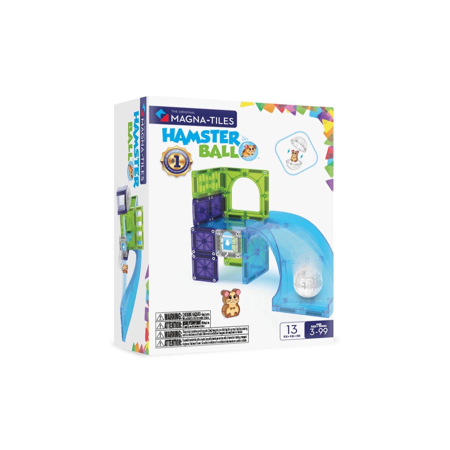 Der Hamster ist los! Das MAGNA-TILES® Hamster Ball Set mit 13 Teilen, rollender Kugel, Rutsche und Deko-Elementen bringt Bewegung und Spass ins Kinderzimmer. Ab 3 Jahren – kombinierbar mit allen MAGNA-TILES® Sets.