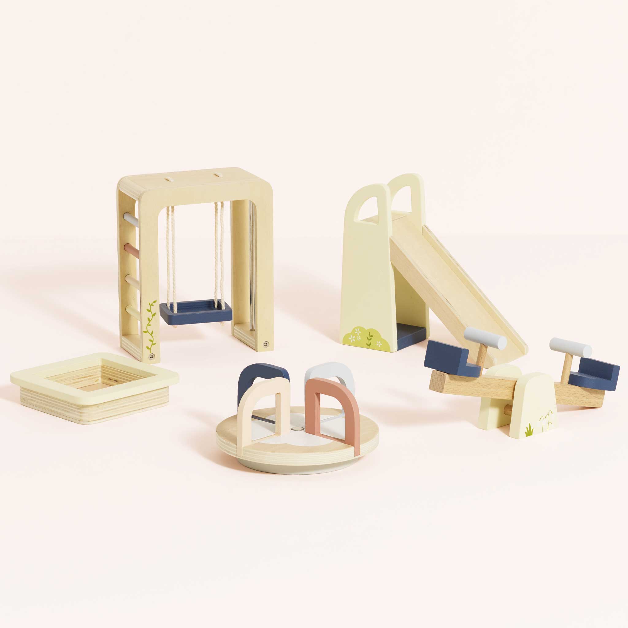 Komplett mit gestreiften Liegestühlen, einem Gemüsegarten, Rasenmäher, Schubkarre, Blumentöpfen, Pflanztisch, Sonnenschirm, Tisch, Trinkbechern, Grill und Giesskanne verleiht dieses entzückende Set der Spielzeit einen schönen, vom Garten inspirierten Touch. Es ist die perfekte Ergänzung für jedes Puppenhaus oder ein eigenständiges Spielset und mit unseren Puppenfamilien- und Möbelsets kompatibel, sodass sich jede Miniaturwelt mit kreativen Geschichten ganz einfach erweitern lässt.