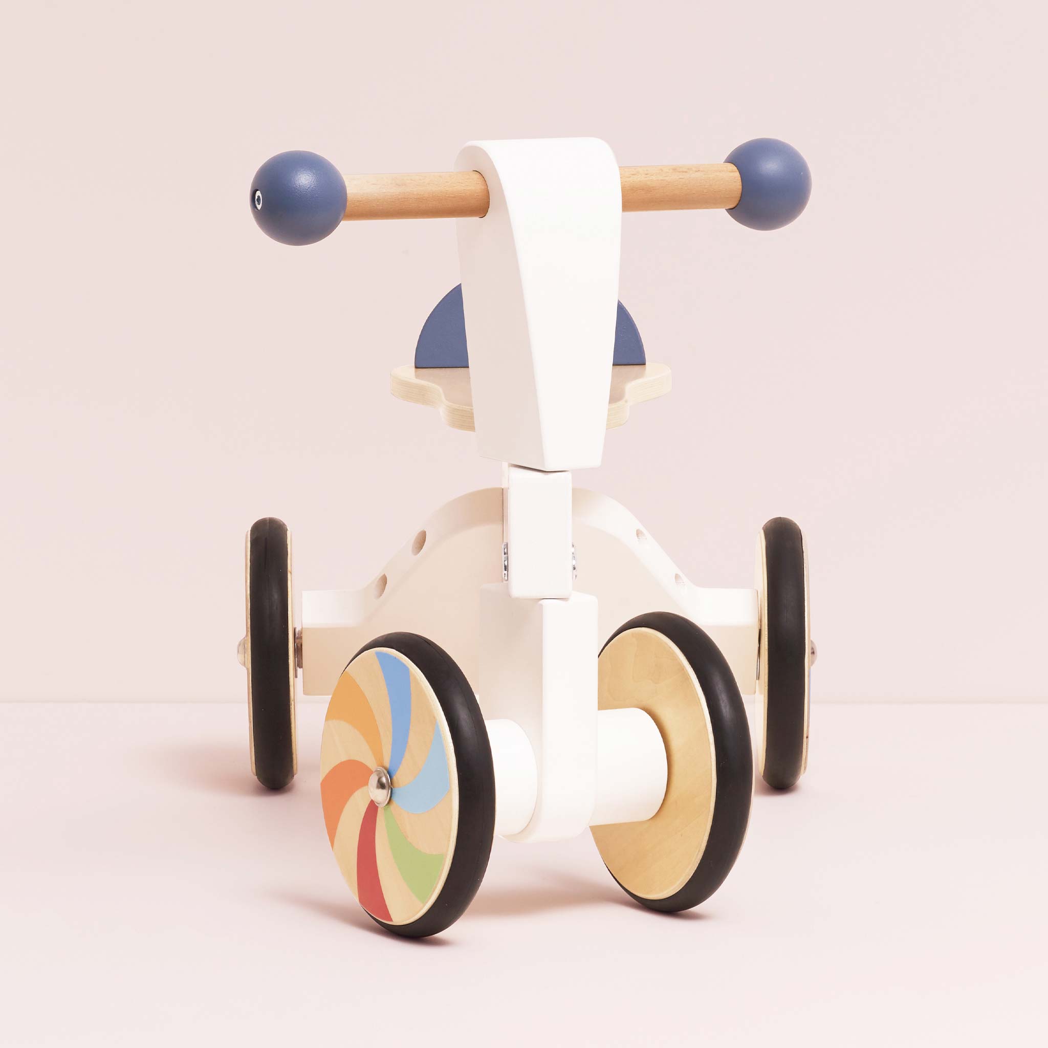 Dieses wunderschön gestaltete Holz-Dreirad aus FSC-zertifiziertem Holz verfügt über eine elegante weiss-dunkelblaue Lackierung und farbenfrohe Windradräder, die für mehr Geschwindigkeit sorgen. Dieses Aufsitzfahrzeug verleiht jeder Fahrt eine verspielte Note. Es wurde für Komfort und Kontrolle entwickelt und verfügt über einen bequemen Sitz und einen leicht zu steuernden Lenker, wodurch es sich perfekt für kleine Entdecker eignet. Dieses stilvolle Aufsitzfahrzeug fördert aktives Spielen und hilft gleichzeitig dabei, Gleichgewicht und Koordination zu entwickeln.