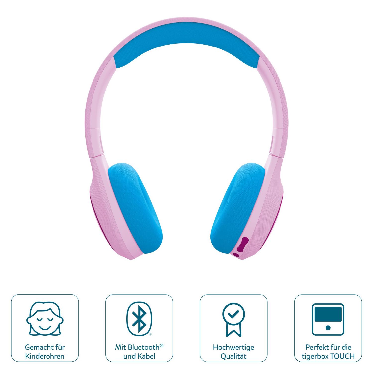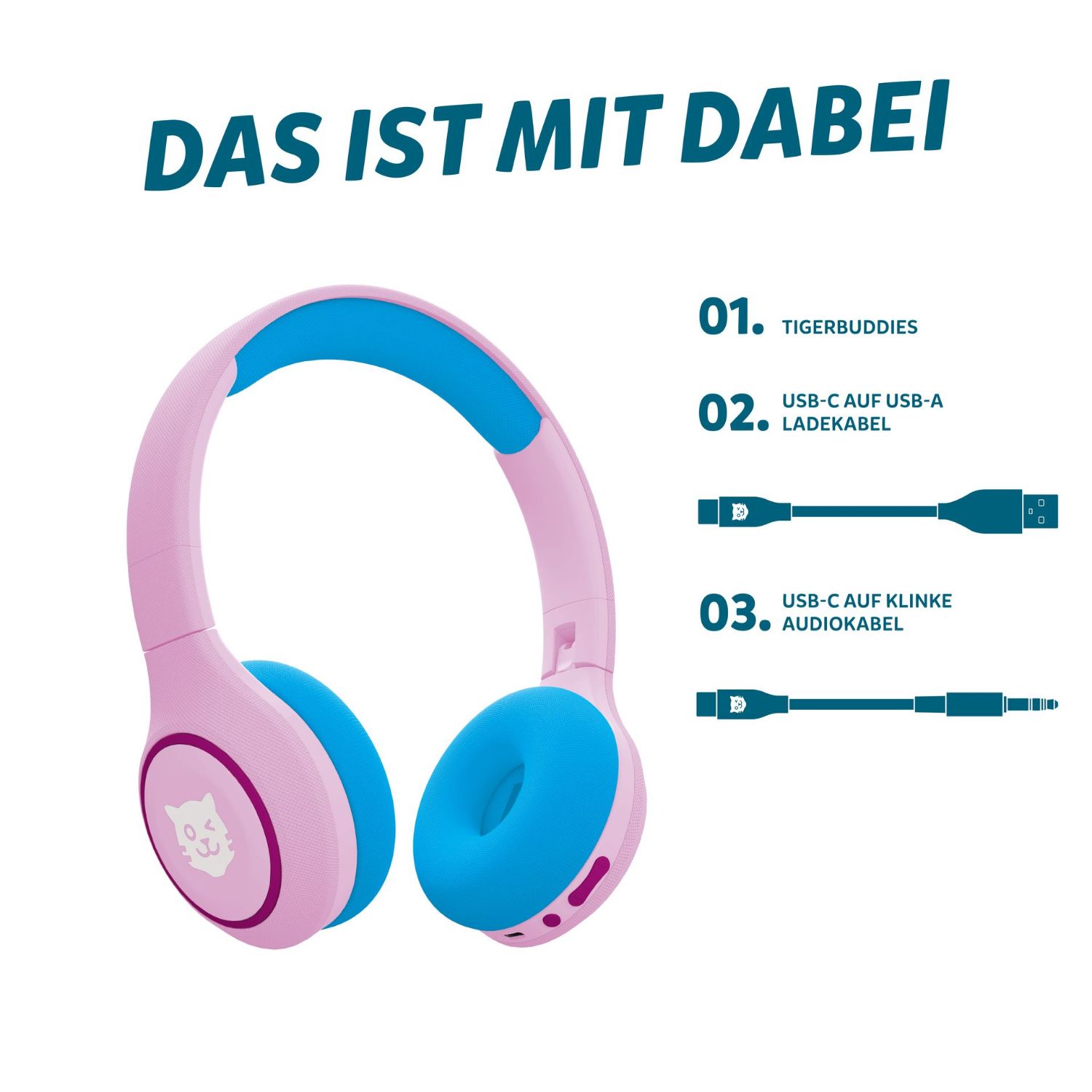 tigerbuddies sind die perfekten Kopfhörer für Kinder zwischen vier und zwölf Jahren. Sie sehen super aus, sind bequem und schützen durch ihre integrierte Lautstärkebegrenzung von 85 dB empfindliche Kinderohren zuverlässig. Dank ihrer verstellbaren Grösse passen die Kopfhörer auf jeden Kinderkopf. Ihr kristallklarer Stereo-Klang ist perfekt auf das Abspielen von Hörspielen abgestimmt. Für das optimale Hörvergnügen empfehlen wir die Verwendung mit dem tigermedia Audiosystem bestehend aus dem Audio-Streamingdienst tigertones und der smarten Hörbox tigerbox TOUCH. Die Box lässt sich ganz einfach mit dem beigefügten Klinkenstecker mit den Buddies verbinden. tigerbuddies sind in drei verschiedenen Farben erhältlich: Crazy Pink, Funky Green und Happy Red. Die Kopfhörer können sowohl kabellos via Bluetooth als auch mit Audiokabel genutzt werden. Somit sind sie mit allen Endgeräten kompatibel, egal ob Smartphone, Tablet, Laptop oder tigerbox TOUCH. Im Lieferumfang enthalten sind die tigerbuddies, USB-C Ladekabel, USB-C Audiokabel und ein 14-Tage-tigertones Ticket in der exklusiven „Swiss-Edition“ mit Zugang zu über 15.000 Hörspielen, Hörbüchern und Musik für Kinder. Dabei sind Disney Helden, Paw Patrol, Peppa Pig und mehr. Zusätzlich in der „Swiss-Edition“ gibt es hunderte Titel auf schweizerdeutsch wie z.B. Globi, Papa Moll, Pingu, Papagallo & Gollo uvm. Top Features: – Kopfhörer für Kinder von 4 bis 12 Jahren – Stereo-Sound – Bluetooth und Klinkenstecker – Weiche Polsterung – Grössenverstellbar und klappbar