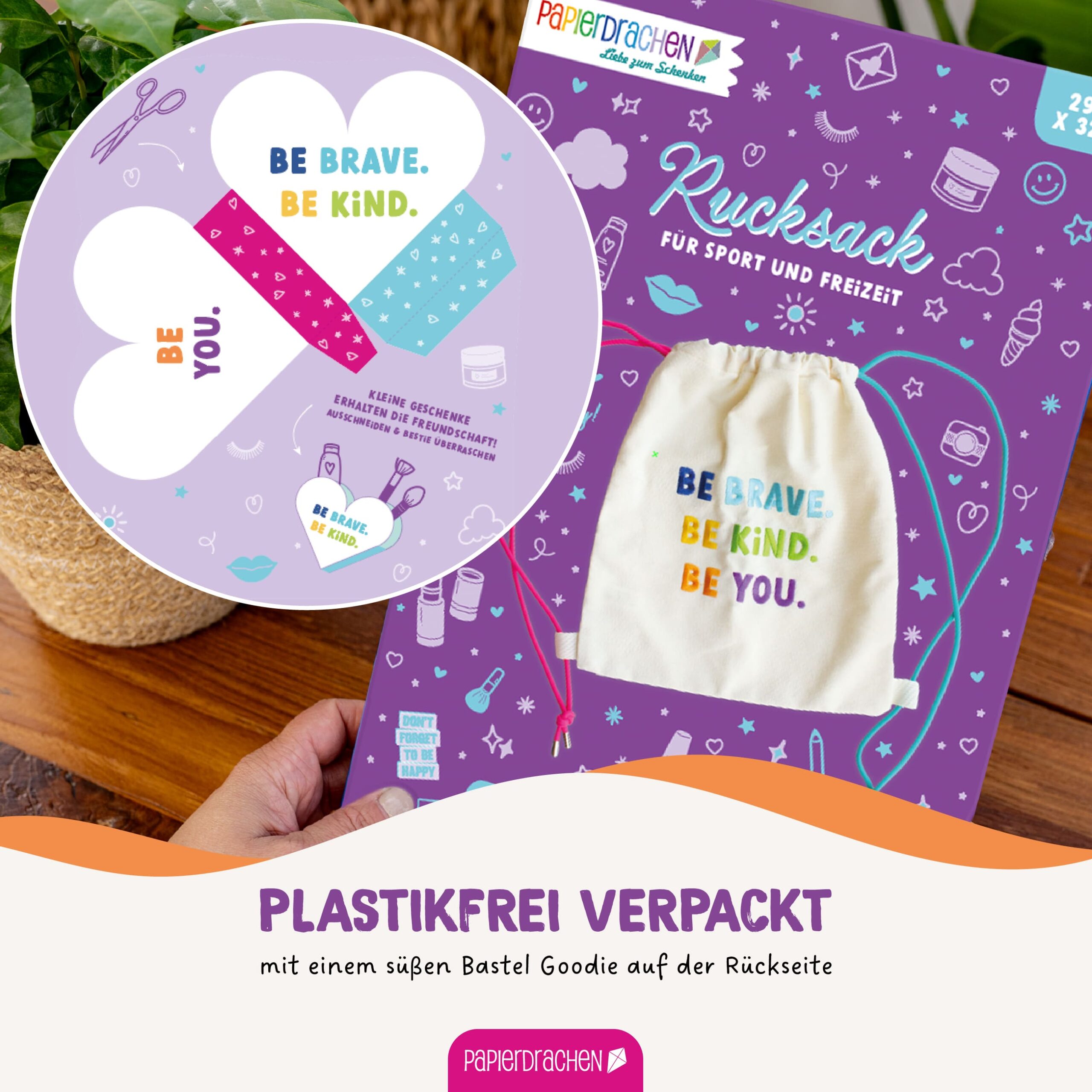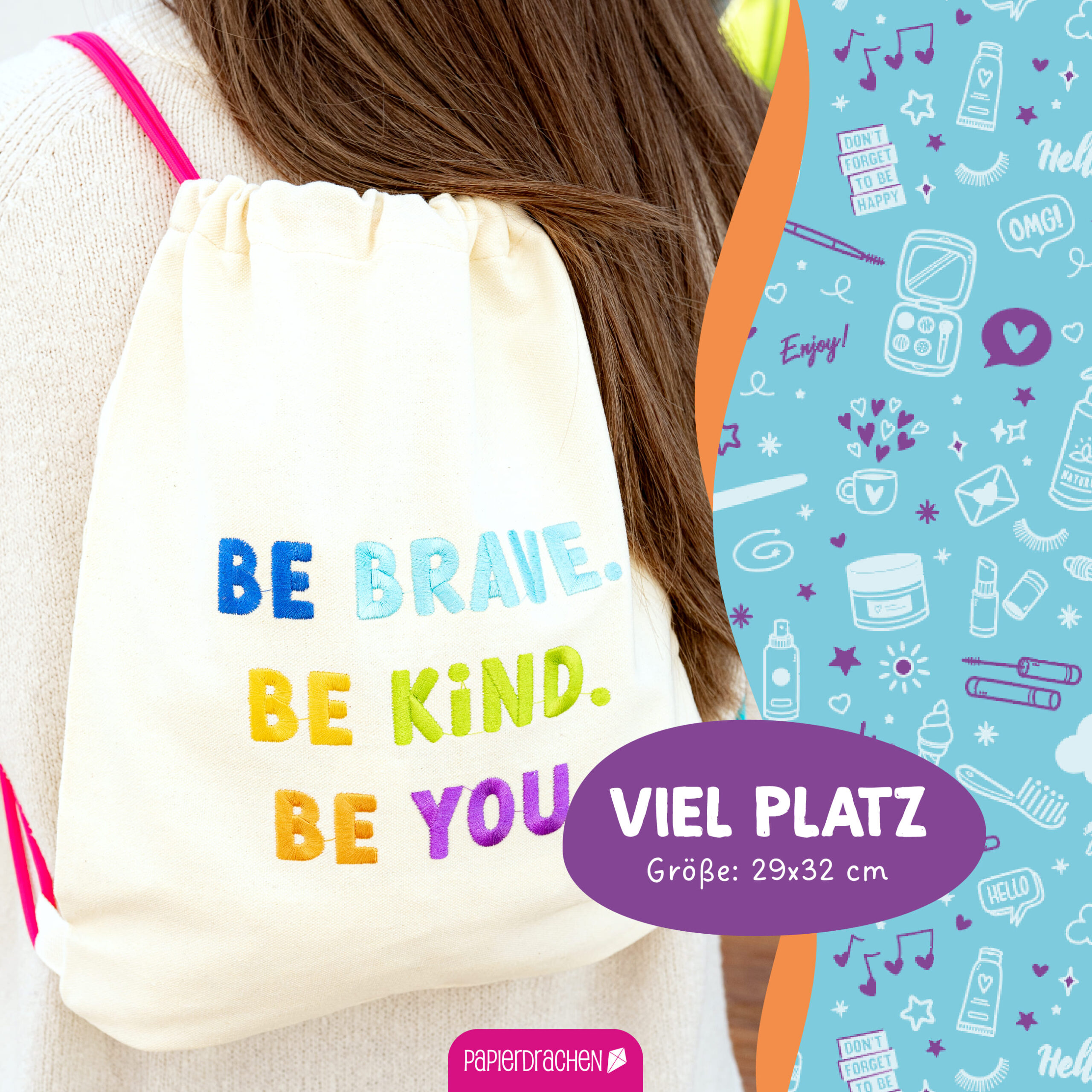 DESIGN: Langlebiger Materialmix aus Polyester und Baumwolle, der durch die bunte Stickerei “Be brave, be kind, be you” optimal abgerundet wird.